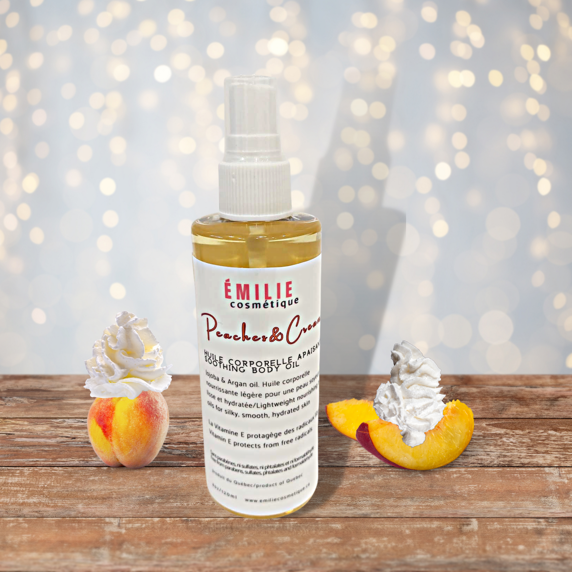Say Hello, to this rich delicious Peaches & Cream Body Oil that will drive your skin into a tropical delight of freshness, hydration and relaxation . Top notes of juicy peach, berries, floral apple and plum. Heart notes of vanilla, coconut with nuances of banana and pineapple. Powder at the base.